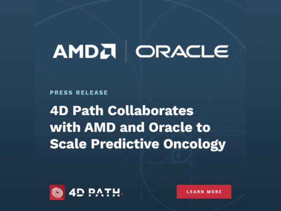 4D Path Collaborates with AMD and Oracle to Scale Predictive Oncology 4D Path | December 10, 2025 Physics-informed, deterministic biomarkers from routine H&E slides run natively on AMD EPYC™ CPUs — enabling reproducible AI-driven solution in clinical trials Sunnyvale, CA and Newton,…