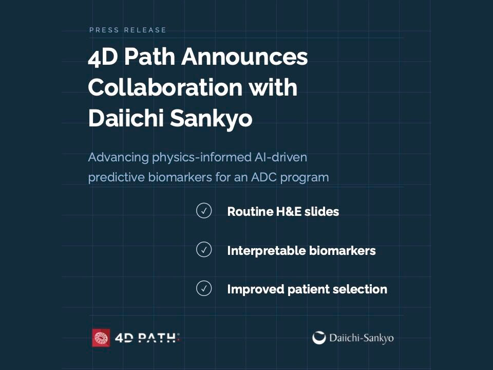 4D Path Announces Collaboration with Daiichi Sankyo to Advance AI-Driven Predictive Biomarkers for an Antibody Drug Conjugate Program Gordon Wong | April 14, 2026 Collaboration to leverage Q-Plasia OncoReader™ (QPOR™) on routine H&E slides to improve patient selection, accelerate clinical development, and deepen biological understanding of response Newton,…